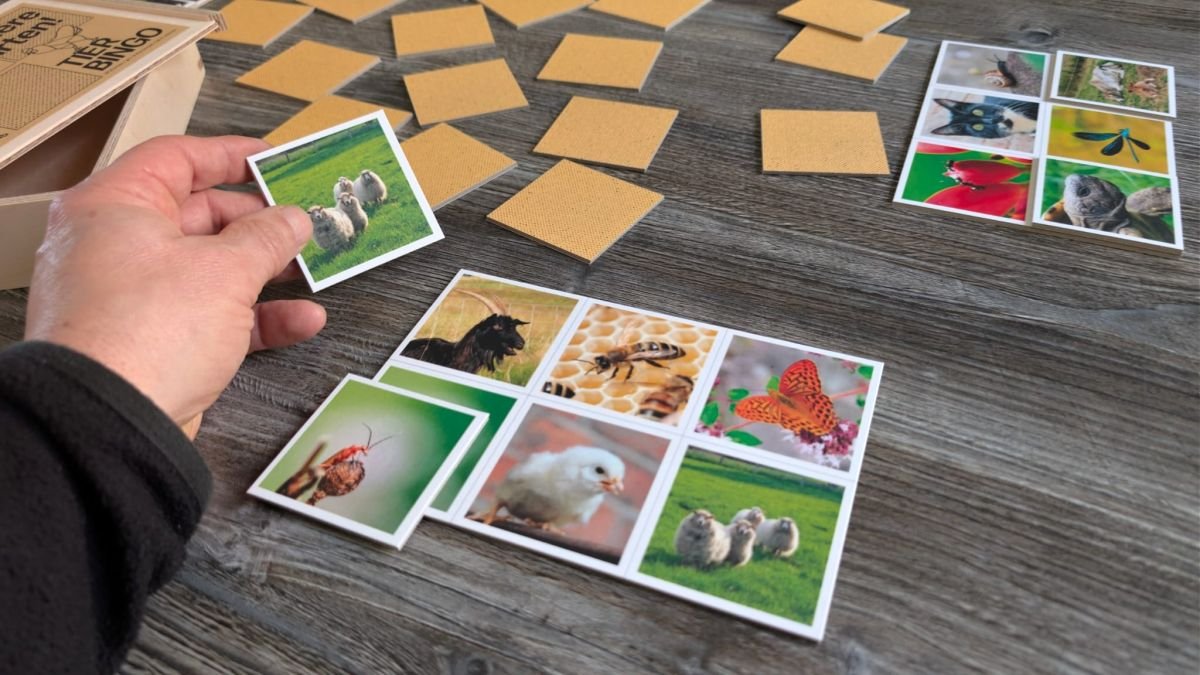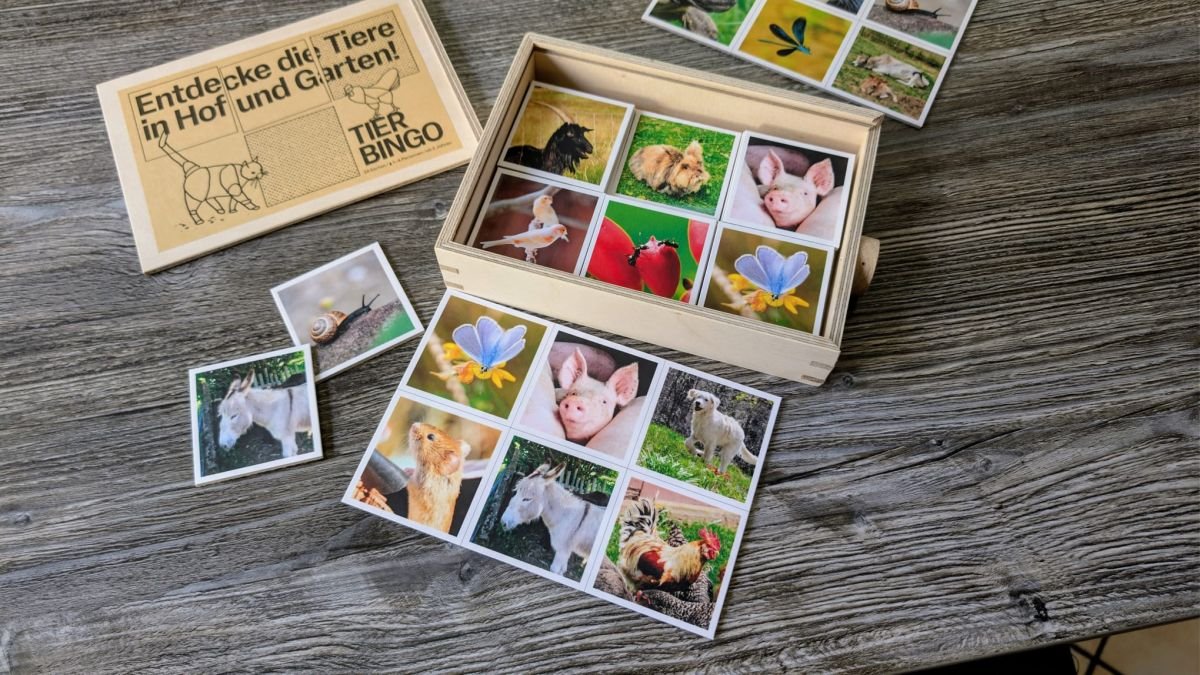 Tier-Bingo ist die vereinfachte Variante für jüngere Kinder ab etwa 2 Jahren oder für alle, denen das klassische Memo noch zu anspruchsvoll ist.